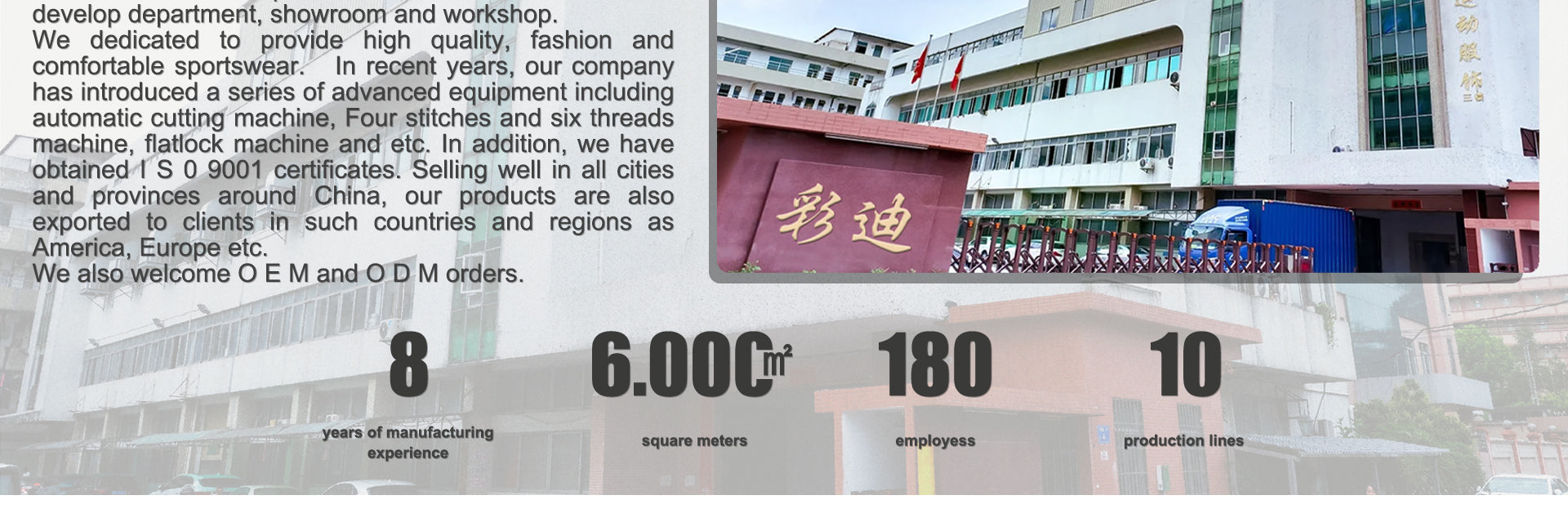A professional manufacturer of sportwear and yogawear, more than 8 years of experience. More than 180 Staffand Monthly Production Capacity 100,000