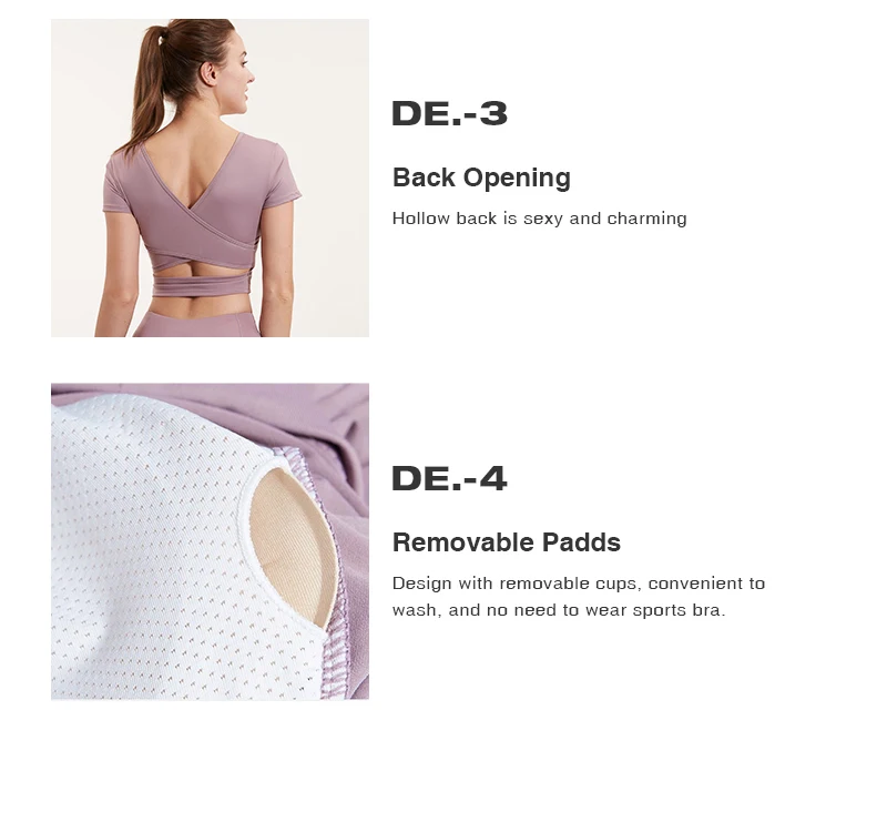Item Type: Hollow back V-neck short sleeves Main fabric: 75% nylon 25% spandex Accessories fabric: 86% polyester 14% spandex Size: S-XXL Note: Please check our size chart before order, if you donot know how to choose size, please kindly contact us with your information height, weight and chest measurement.